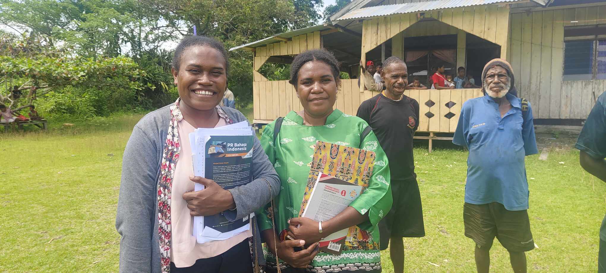 Para guru honor di Distrik Dow juga mengajar tanpa kontrak resmi dari pemerintah daerah dan tidak menerima gaji tetap. Mereka tetap mengabdi dengan tekad kuat untuk melayani anak-anak di kampung mereka.