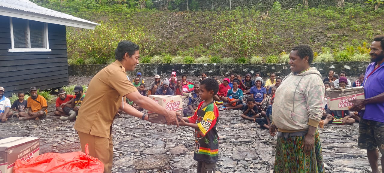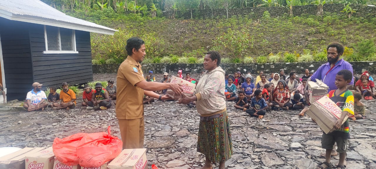 Bupati Willem Wandik dan Wakil Bupati Yotham Wonda menyerahkan bantuan berupa 18 sak beras (50 kg), 3 sak gula (50 kg), 30 karton supermi, 1 karton garam, dan 1 karton feksin. Bantuan disalurkan oleh tim dari Dinas Sosial Kabupaten Tolikara pada tiga titik lokasi terdampak.
