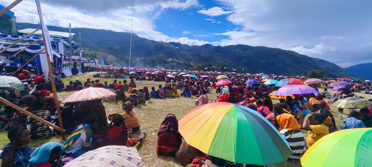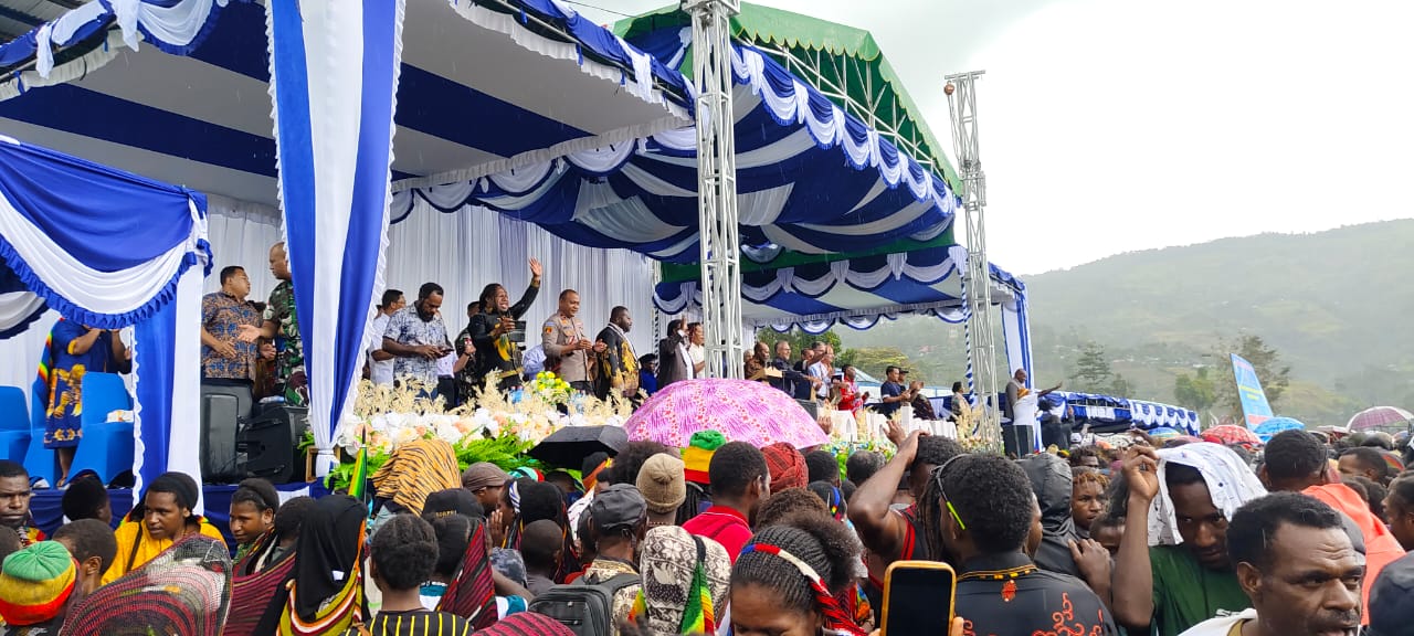 KARUBAGA, SUARALANI.id – Ribuan umat dari Gereja Injili di Indonesia (GIDI) yang hadir dari 18 klasis di Wilayah Toli memadati Lapangan Pendidikan Karubaga, Kabupaten Tolikara, untuk menghadiri Ibadah Akbar yang sekaligus menandai penutupan Seminar Okultisme dan syukuran peluncuran 2.000 eksemplar Alkitab dalam Bahasa Lani, Rabu (22/10/2025).